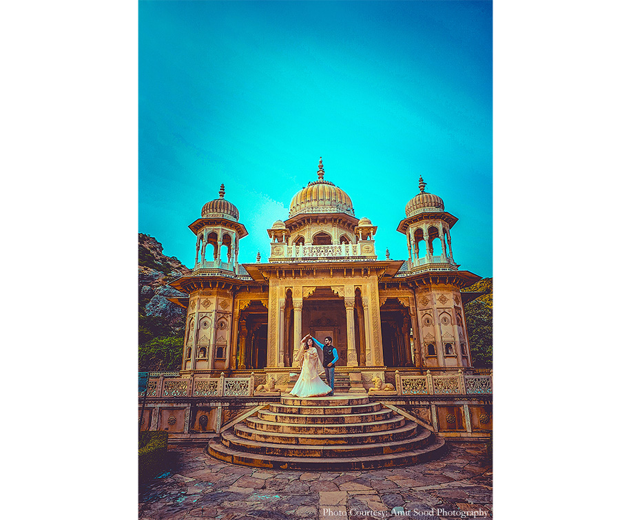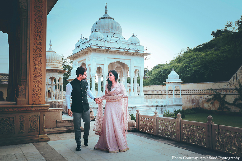 Pratik and Vasu chose the ‘Pink City’ of Jaipur for their pre-wedding shoot. Shot against the canvas of royal palaces and other opulent backdrops, the couple’s romance comes alive as you browse through the spectacular shots captured by Amit Sood Photography.
