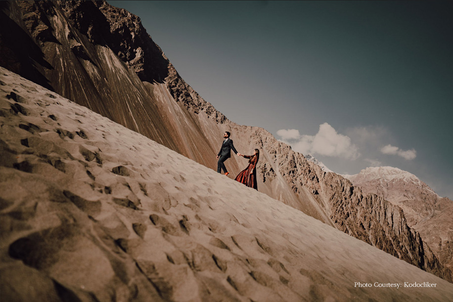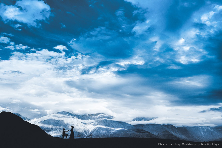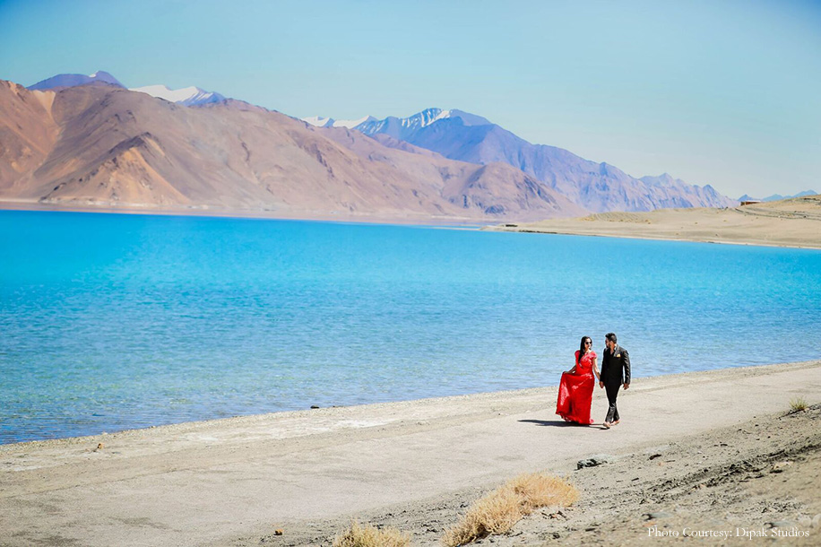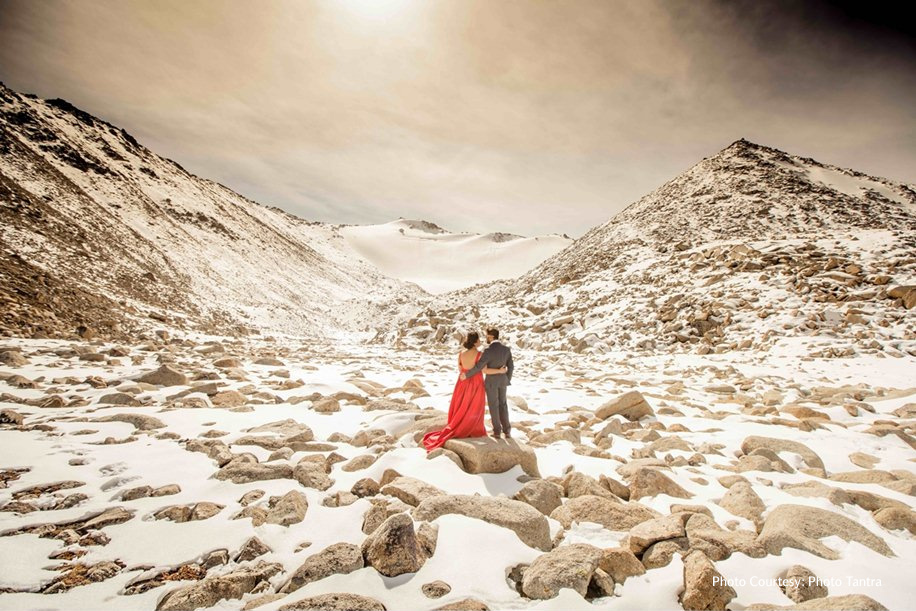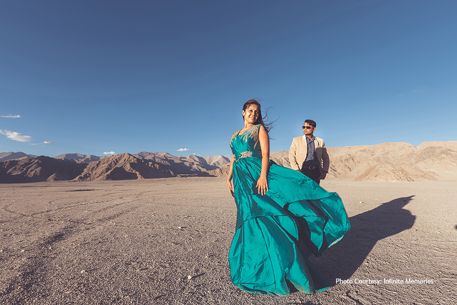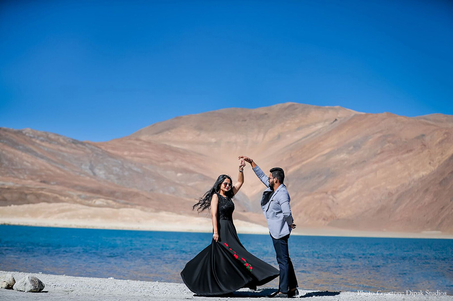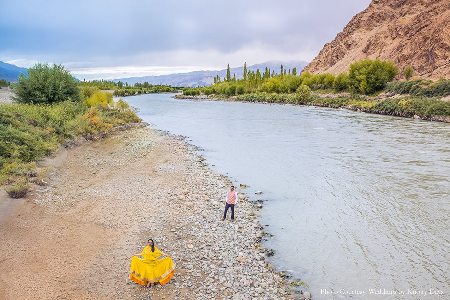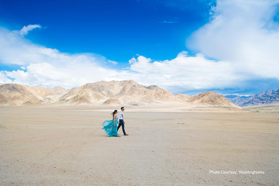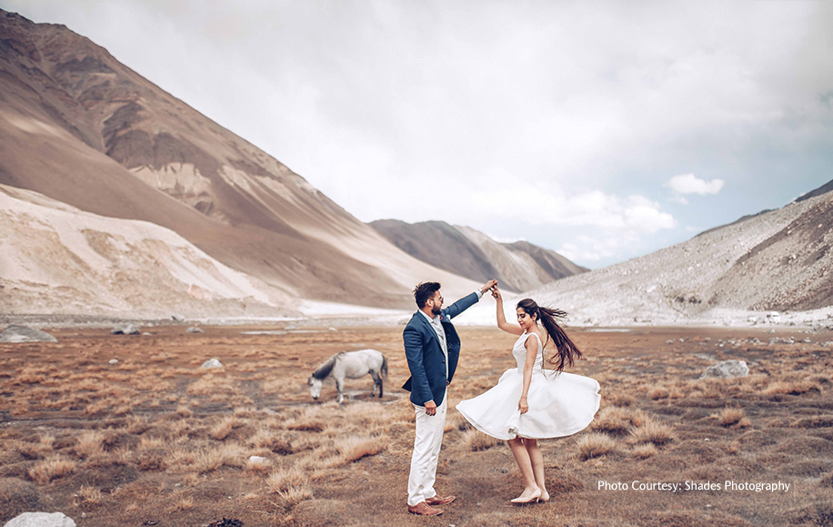 Ladakh is a haven of picture-perfect views. The mountainous terrain provides ample opportunities to those looking to mix romance with dramatic natural beauty for their pre-wedding photo shoot. Here are our top photo shoots that took place in lovely Ladakh.