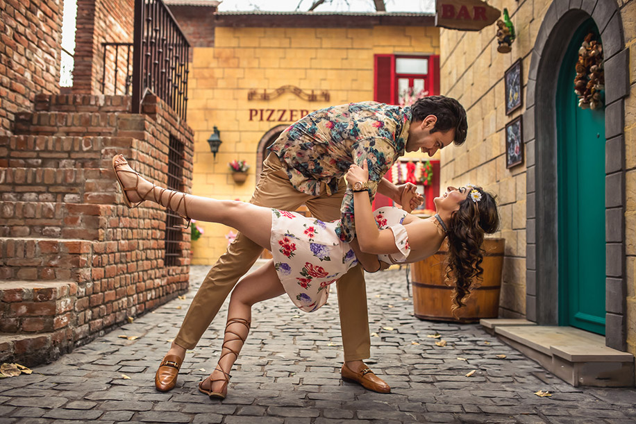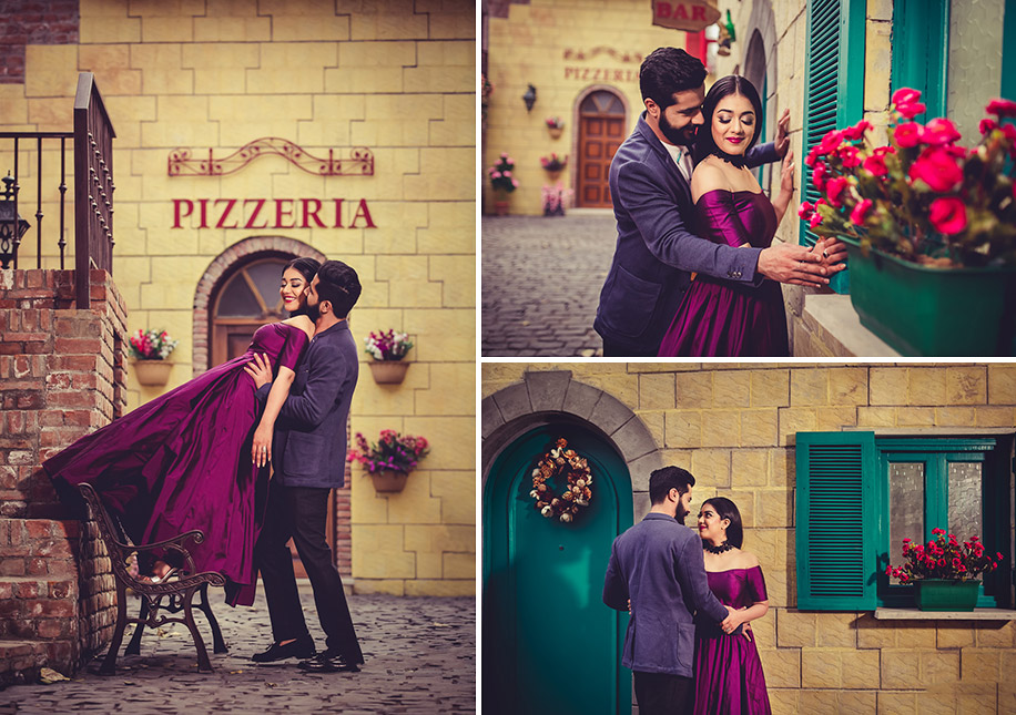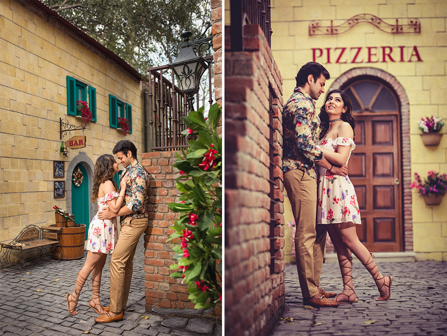 With its growing popularity, the pre-wedding photography hotspot, ‘The Perfect Location’ recently launched a new set – The Tuscany Street – which features floral décor, bar, a Pizzeria corner and cobbled streets, all beautifully done in rustic brick and textured walls to bring alive the authentic feel of Tuscany in India. Three lucky couples were invited to the gorgeous location where they were captured by ace photography duo Aastha and Gaurav from Hitched & Clicked. Here, they share their story and experiences…