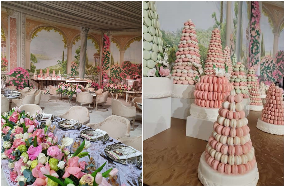 5. An exquisite combination of pink blooms, towers of delicate maccarons, and ivory hues – this wedding looked straight out of a storybook. Pink roses lined the tables, a castle-shaped cake tempted the guests and a garden backdrop made the indoor venue feel like an idyllic English garden.