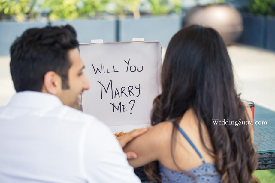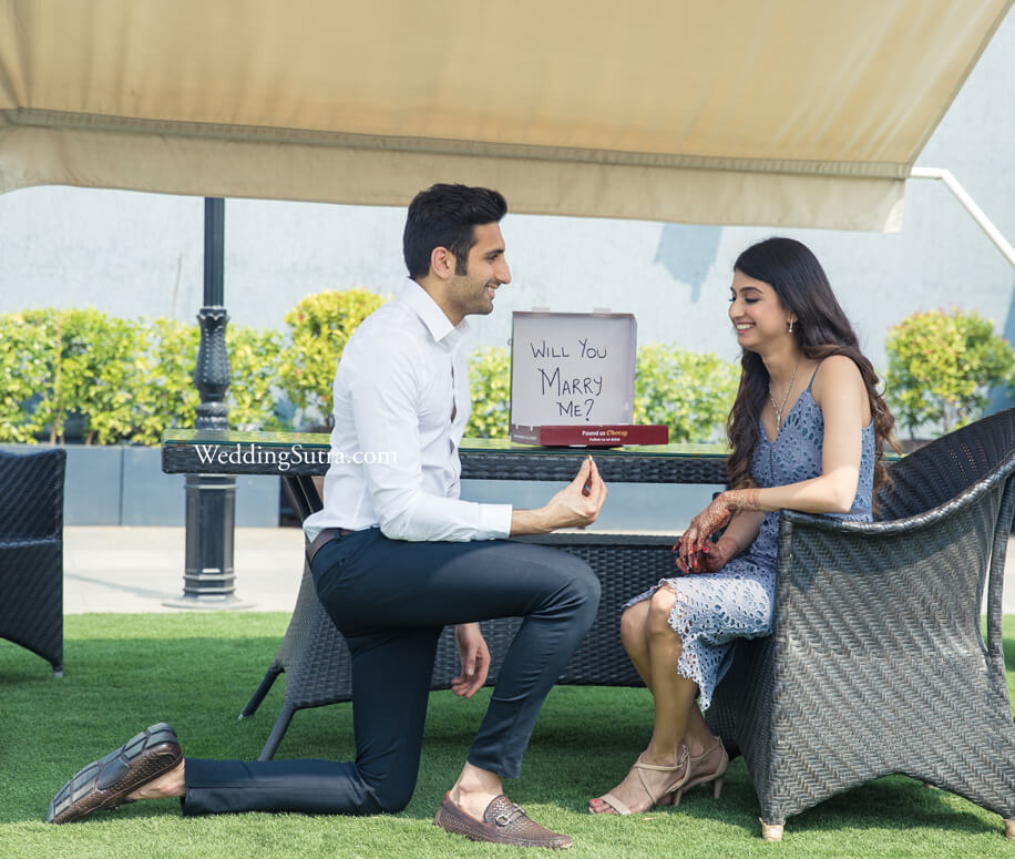 Pooja opens up the box to a message that reads, “Will You Marry Me?”
