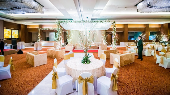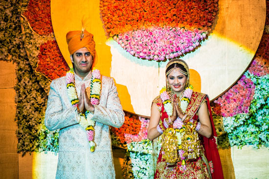 The main Wedding function was held at The Grand Hotel, Vasant Kunj where the decor was designed and conceptualized by industry veteran Geeta Samuel. The bride wore a hot red lehenga designed by Pallavi Jaikishen and the groom was dressed in a sherwani by JJ Vallaya. The finale was a formal Reception at The Lalit. Neha wore a Sabyasachi saree and Simran wore a classic tuxedo designed by designer duo Rohit & Rahul.