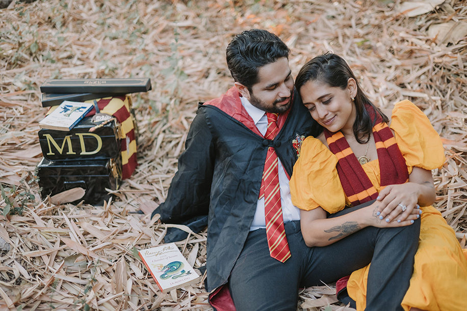 Agni adds, “The Harry Potter book series has been an integral part of our formative years. Meher, especially, loves the books. Even our dog is named Padfoot, after Sirius Black who is Harry’s godfather. It was thus a no-brainer that the proposal had to be in Harry Potter style. I presented her with the ring in a Golden Snitch and to my pleasure, she was so excited! I did include my love for Pokemon in the proposal as well as I said, ‘Roses are red, violets are blue, if you were a Pokemon, I’d choose you’”