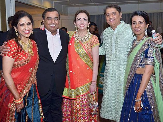 The groom’s mother and bride’s parents with Nita and Mukesh Ambani