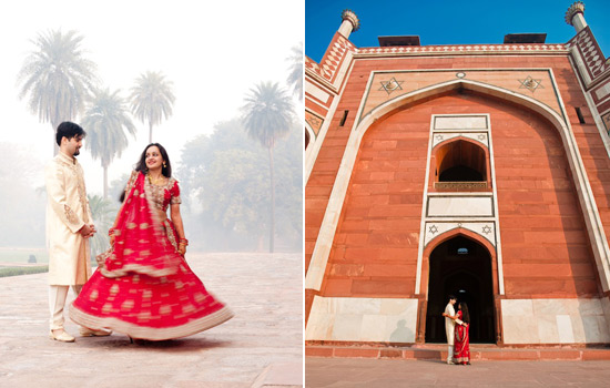Saneesh immortalized the romance of Shailvi and Govind at Humayun Tomb in Delhi. Decked up in their wedding dresses, they braved the December chill, says Saneesh, “One thing we were worried about was having too many people so we had to schedule the shooting early in the morning. Even though it was very cold, Shailvi and Govind were in high spirits and did an excellent job without freezing.”
