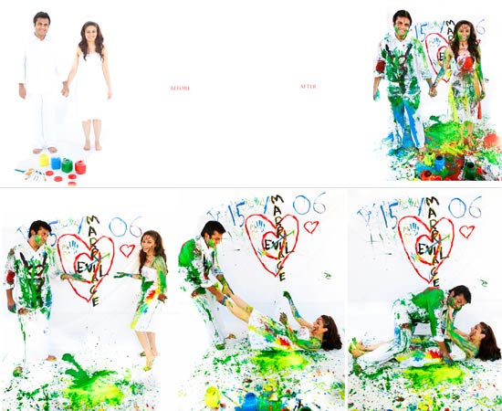Silverware, exclusive linen, home decor are common gifts. Gadgets turn passe quickly and antiques are on everyone’s list. So what can you gift to surprise and enamor your loved ones? Romantic fun, cheesy or whacky and crazy –pre and post wedding shoots are the perfect gift to captivate the love birds for lifetime. WeddingSutra showcases five contemporary photographers and their concept pre-wedding shoots.