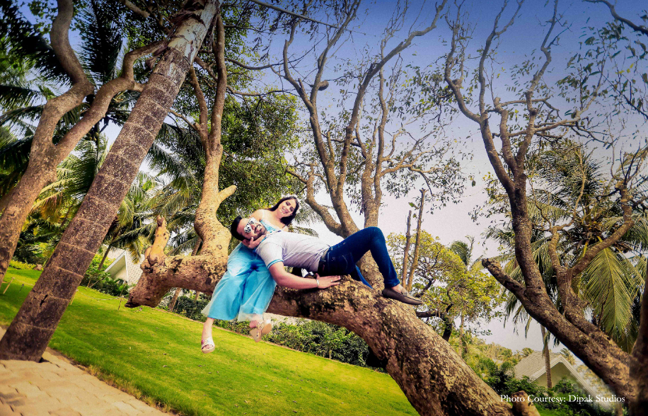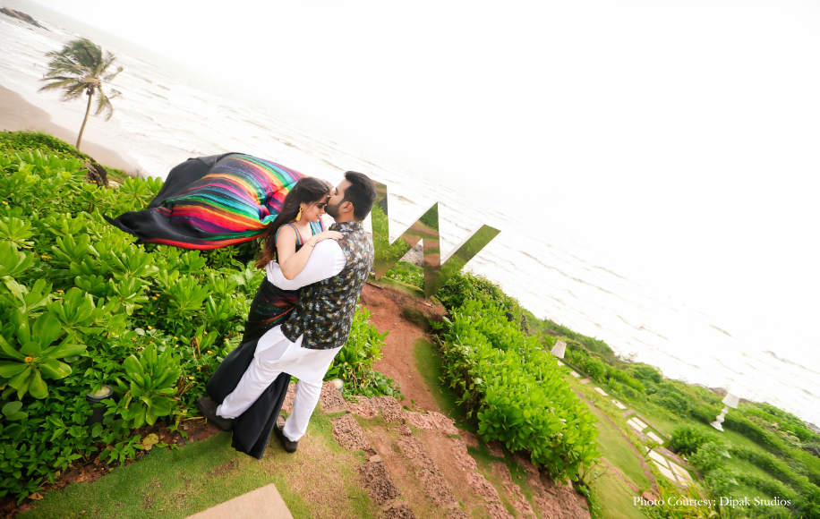 With its palm fringed beaches, golden sand and a beautiful blend of Indian and Portuguese culture – Goa is often considered synonymous with high spirits and fun-filled escapades. But Jatin and Lashika’s pre-wedding shoot captured by WeddingSutra Favourite – Dipak Studios at W Goa unfolds Goa’s hidden beauty and proves that this tropical paradise can also be a serene, romantic hideaway.
