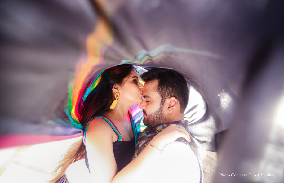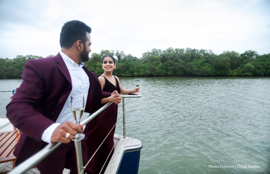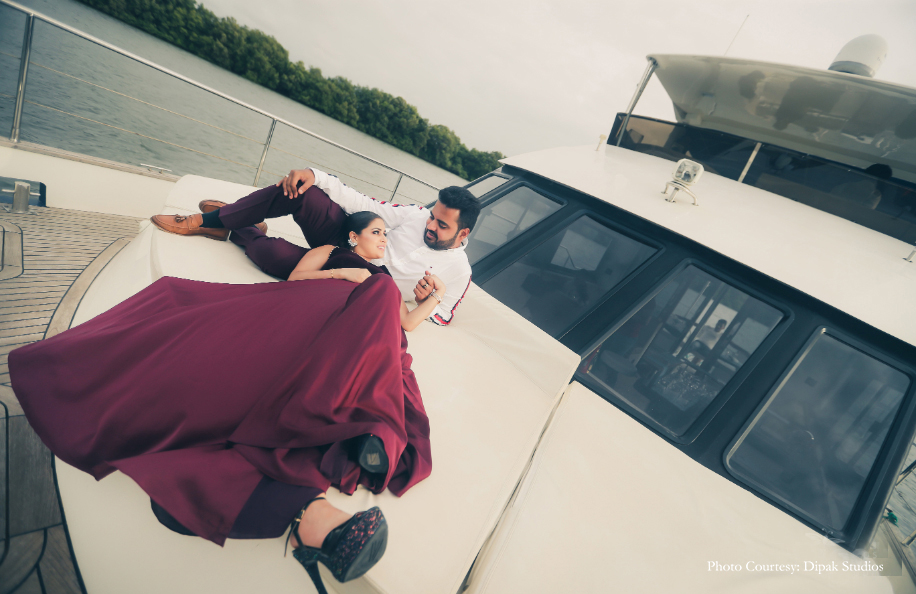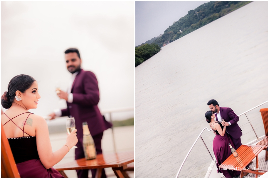 Each frame manages a cinematic quality and the couple shared some gorgeous moments of love and laughter against the idyllic surroundings skillfully captured by Dipak Studios. “If anyone asks which was the most memorable part of the shoot, I’d say the stupid (but funny) pranks that deepened our bond,” says Lashika.