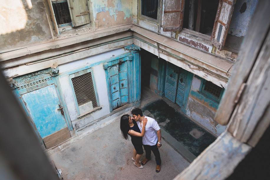 Varun lives in Australia and had come in only for his sister’s wedding and to get engaged to Madhu. Though he grew up in Ahmedabad, he’d actually never been to the old city so for him, it was as much of a revelation as it was to Madhu. Not to mention the fact that they got to play ‘tourist’ as they spent some quality time together. The couple is fun loving, affectionate and ready to try new things. They have incredible chemistry, which comes through in the photographs.