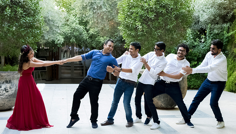 Having spent most of their childhood together, the two who decided to spend the rest of their lives together realized they didn’t even want to have a pre-wedding party apart. It may have been the first tandem Bachelor and Bachelorette Party ever when Pritika and Mudit chose the same destination and tied the boogying in with a pre-wedding shoot.