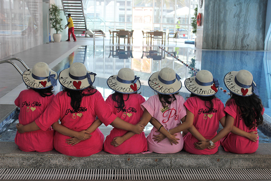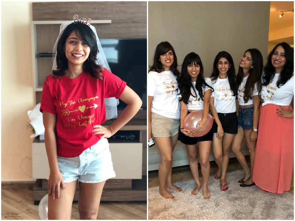 “It was 11 of us and we packed our bags for 4 days of partying. The girls had a fun bachelorette planned for me and the boys had their own list of things to do! From printed t-shirts, personalized hats, matching robes to stunning photo settings, the afternoon was nothing short of perfection! Tons of drinking games, hours of dancing and an amazing photoshoot later, we were finally done and had a heart full of unforgettable memories to cherish forever.”