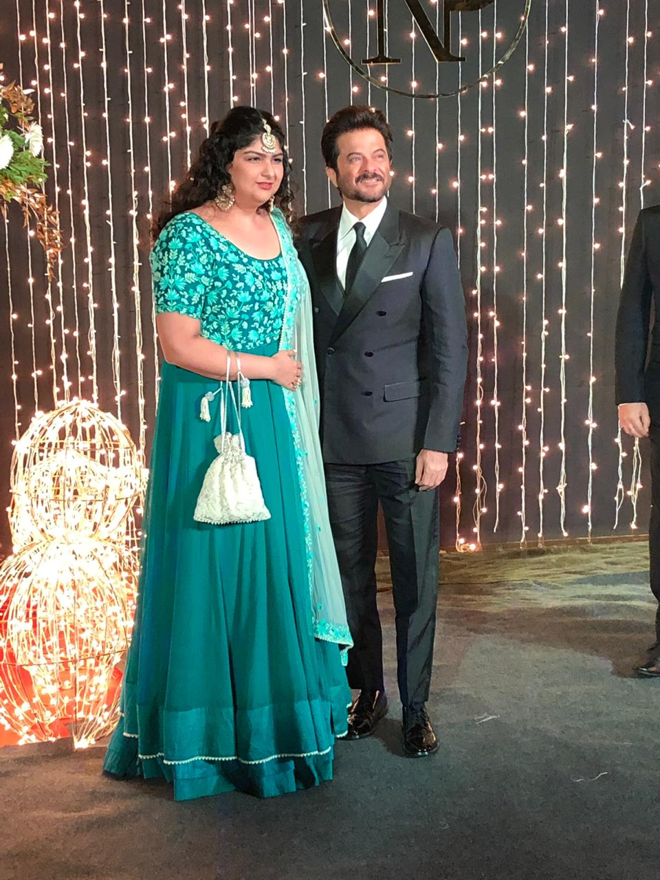 Ameesha Patel graces in a gold lehenga while Anshula dazzles in a teal ensemble and Anil Kapoor looks dapper in a black suit.