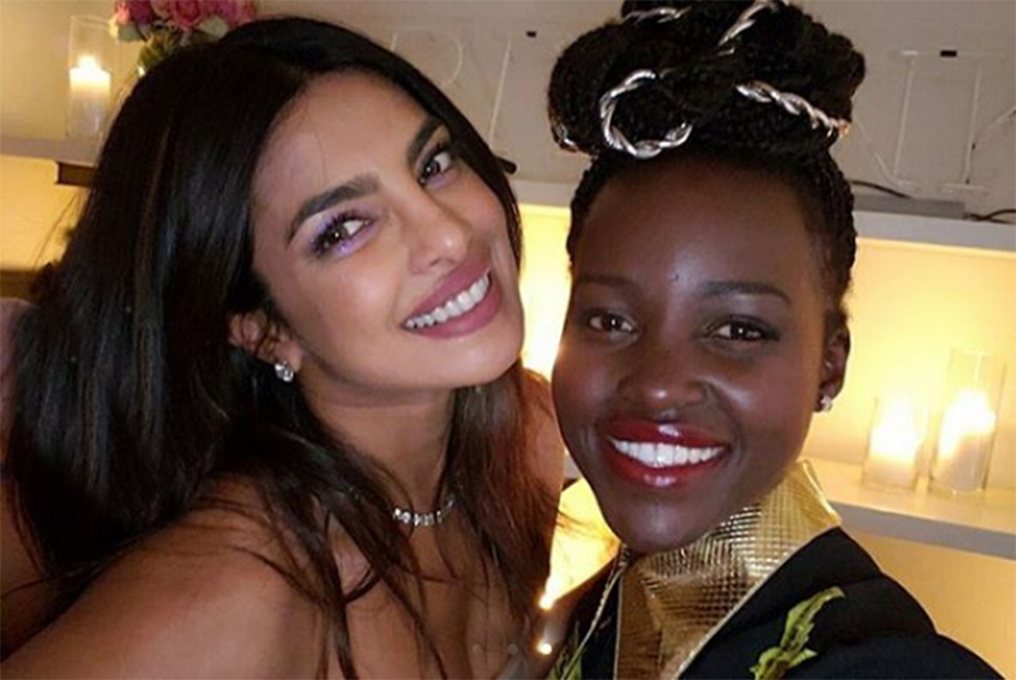 Styled by celebrity favourite, Mimi Cuttrell, Priyanka’s look was completed with patent nude Louboutins and a clutch by Jimmy Choo. Makeup Artist Yumi Mori kept Priyanka’s look simple by choosing a fresh, dewy base and adding a purple pop of colour to her eyes.