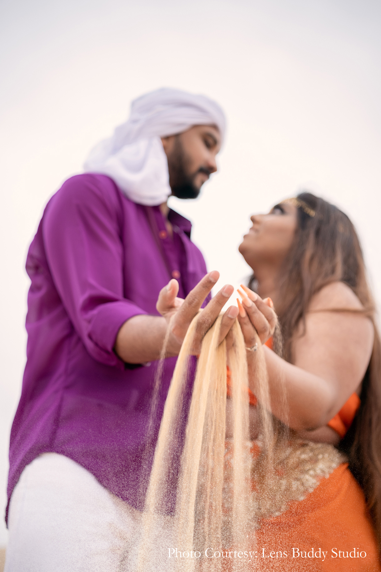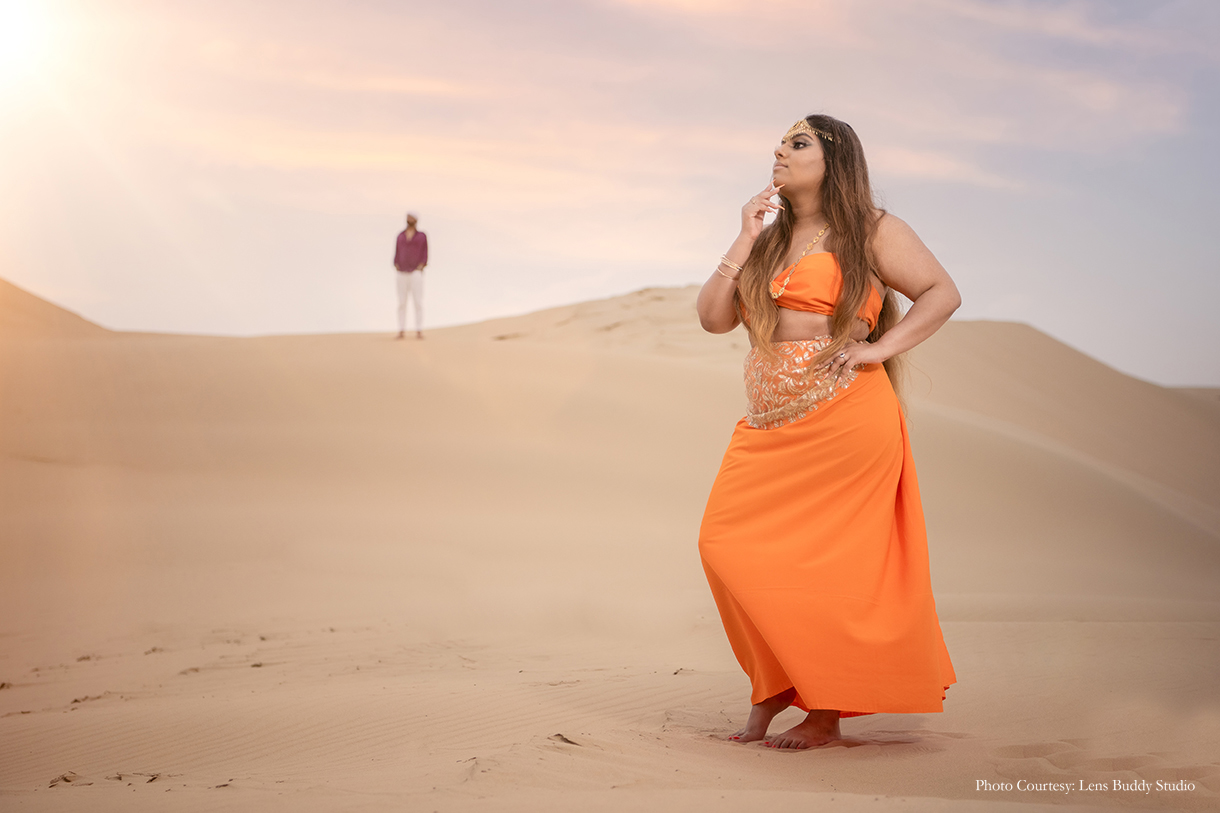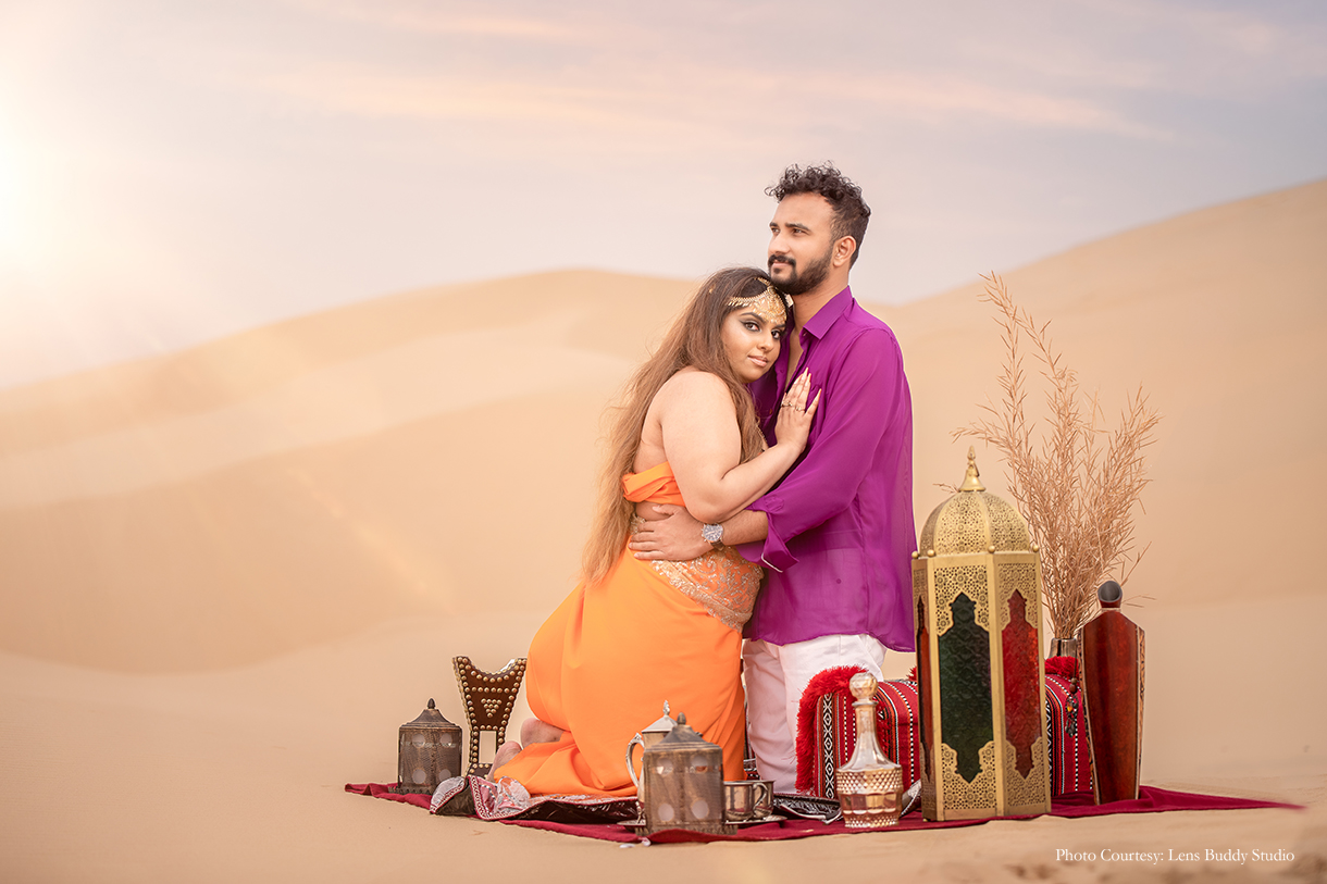 Born and raised in the Middle East, Ishani and Malindu lived out their ‘Arabian Night’s’ dream in the stunning Qatari desert, with a pre wedding photoshoot that was as romantic as it was mystical.