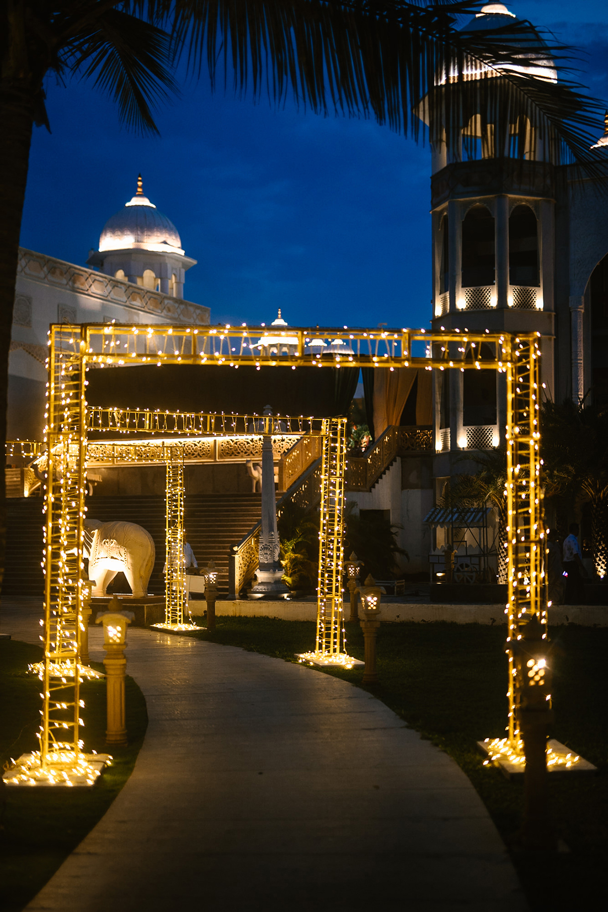 Giving us an overview of the couple’s brief and the creative process. Sowmya Rajaji from PetalsNDrapes shares, “The client gave us a blank canvas and told us to use our creativity to go about the events. Our only task was to make one event unique from the other. What we enjoyed the most is the freedom in being able to propose the craziest of ideas to the client and their trust in us. We loved working in the beautiful property of Kaldan by the beachside and their utmost hospitality to vendors like us.”