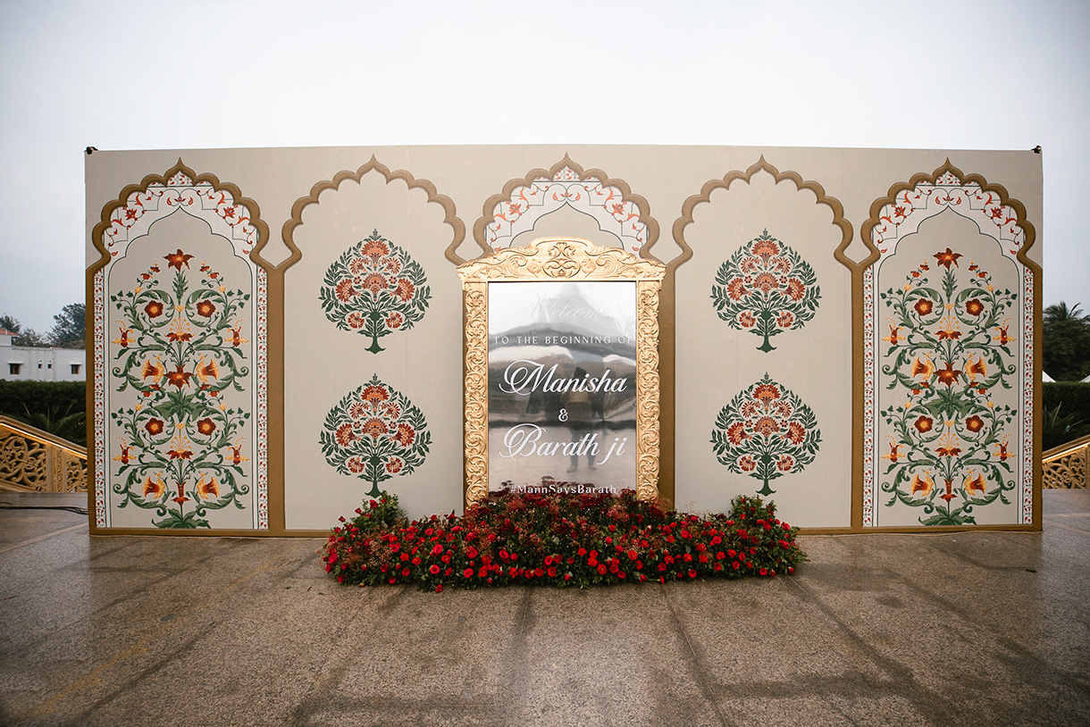 Flaunting a variety of themes, right from chic boho to traditional opulence – Manisha and Barath’s wedding was one for the books with its spectacular design story. Orchestrating the wedding was WeddingSutra Favorite – 3X Events who seamlessly coordinated with the wedding squad to make this wedding a hit. And, bringing the couple’s vision to life was WeddingSutra Favorite – PetalsNDrapes who were at their creative best as they designed the wedding with meticulous detail.