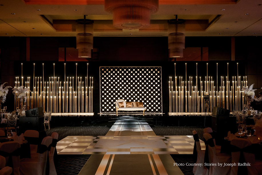 Varsha and Aadil’s reception at the Kempinski Hotel Muscat in Oman was an enchanting mix of glitzy decor, a vintage 20s vibe and lots of spontaneous fun, all thanks to WeddingSutra Favorite Mosaic Events. The country, a perfect destination for opulent, regal weddings, provided the reception with gorgeous backdrops. Here are a few glimpses of the evening that will set major reception decor goals!