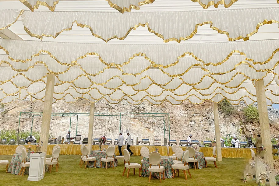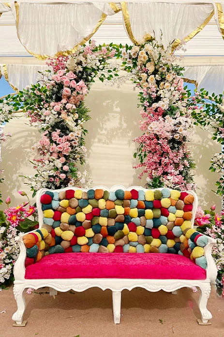 Raising the bar high when it came to grandeur, this destination wedding in Rajasthan enchanted the senses with its out-of-the-box concepts. Thoughtfully designed by WeddingSutra Favorite – Elusive Dreams by Pooja Doshi, the decor setups rejuvenated the senses with their varied hues and fresh silhouettes. Adding their mastery into the mix was WeddingSutra Favorite – Mokshiva Entertainment and WeddingSutra Favorite – DS Weddings and Events who produced the decor.