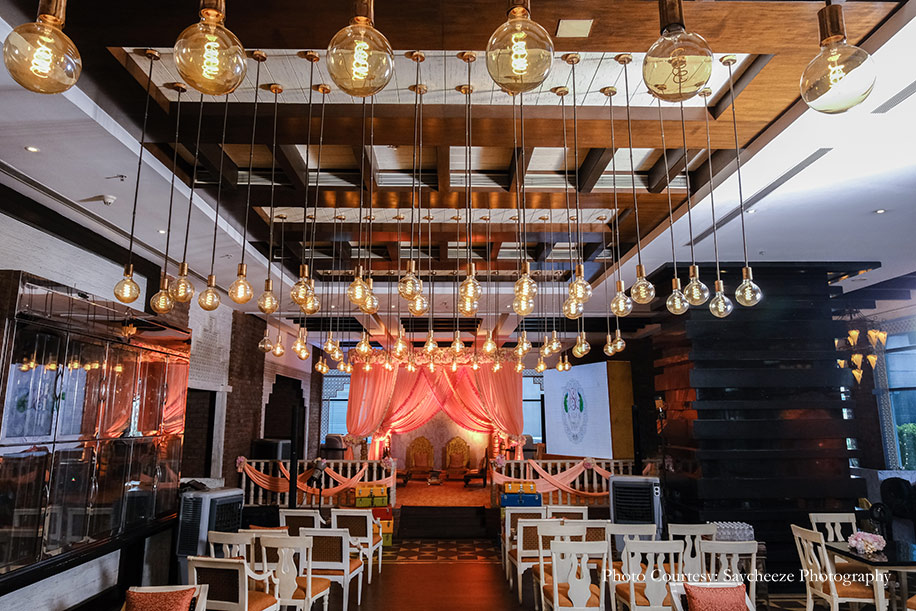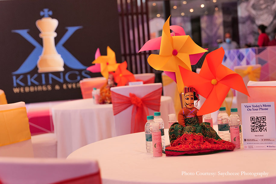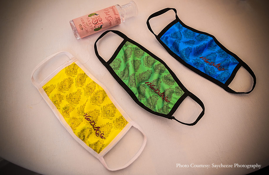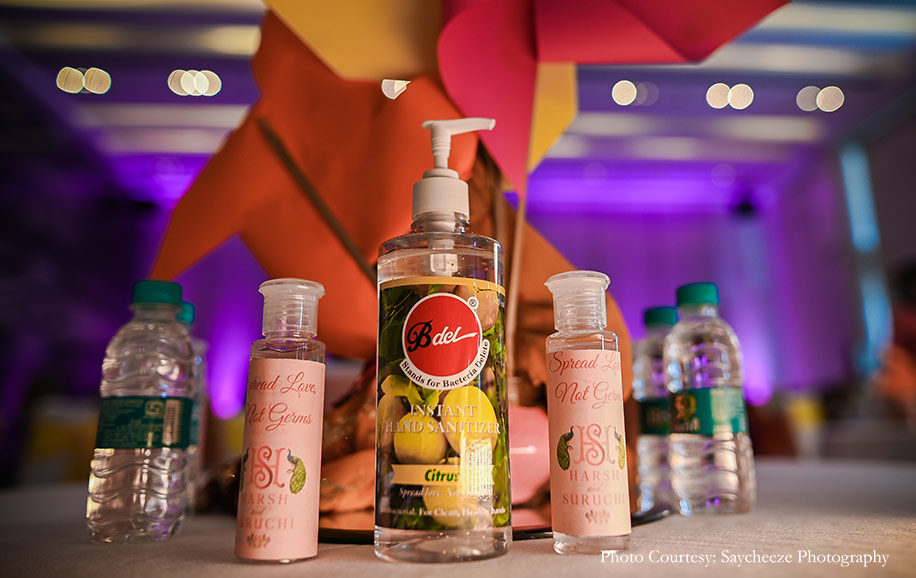 “When guests started arriving, a three-step process was followed for each person, which was to check their temperature, sanitize their hands, and provide customized face masks to add some fun to the event while ensuring safety. Social distancing protocols in terms of seating layout were planned in detail and executed. Finally, all cutlery items were UV sterilized and handed to guests directly from the UV Box, and the entire buffet was strictly served only by the catering staff equipped with PPE Kits. Following these guidelines, we ensured peace of mind for everyone as everyone, especially Harsh and Suruchi, thoroughly enjoyed the celebrations. ”