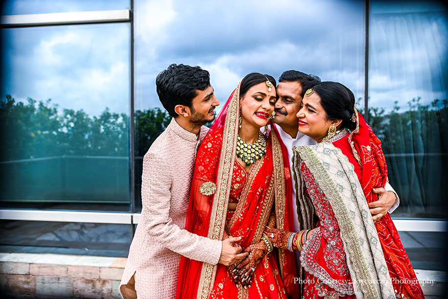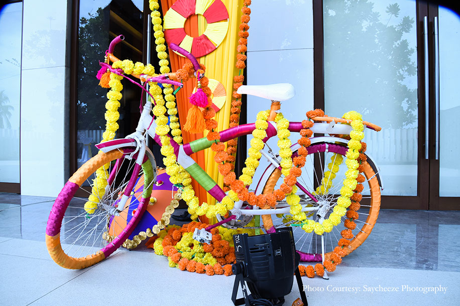 Despite the restrictions of the lockdown that put a downer on the initial plans of a royal wedding, the bride wanted to host all three of the major events, albeit on a smaller scale. Monil shares “Even though we had to transform the big fat Indian wedding into an intimate celebration, every event was full of beautiful moments, love, and unique elements. For the mehndi, we planned a fun antakshari competition with all audiovisual parameters synced which everyone loved. The sangeet saw three types of perfectly planned performances to cater to both live guests and guests on Zoom calls. Anchor Chirag Vithlani hosted the event, while singer Shanay Shah and comedian Ojas Rawal entertained guests over a Zoom call.”