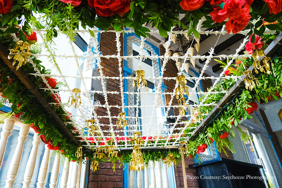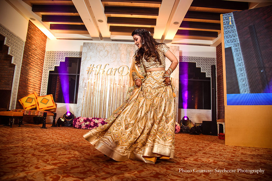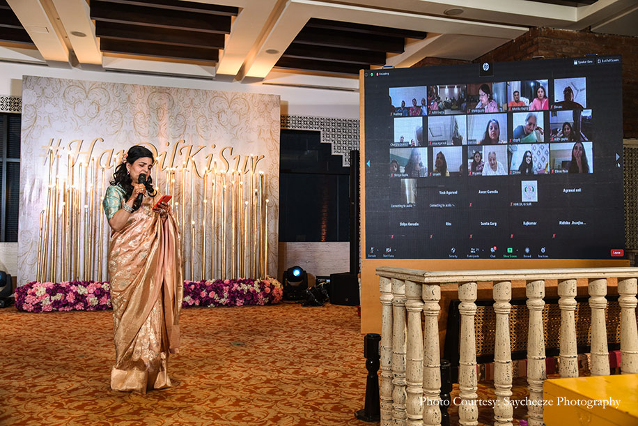 The Vivaah Wedding Decor Stylist team created beautiful decor setups for the sangeet and wedding, while Glitz Entertainment executed the decor concepts for the mehndi. Saycheeze Photography captured every second of the festivities in flawless frames. A host of entertainers provided memorable performances live and over Zoom calls.