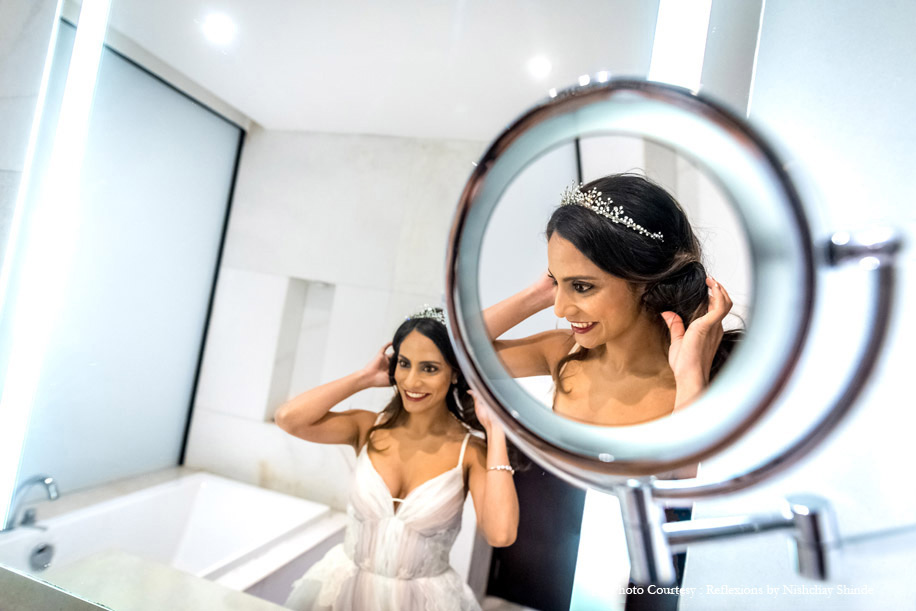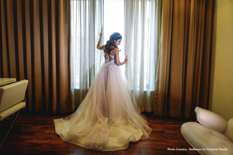 Nishchay Shinde played a key role in making the shoot a magical experience for the couple. He worked on the great chemistry and bond that they share to produce unique photos. Rhea shares, “The wedding day goes by in a flash, so we made sure to take mental snapshots throughout the day. Besides that, we also invested in a good photographer/videographer, since their work is the way you’ll relive every moment for years to come! Hiring Reflexion by Nischay Shinde was the best decision we made!”