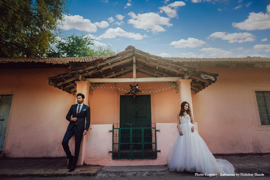 Rhea and Snehal explored the quaint corners of Daman looking like a fairytale couple. As they posed against the charming backdrops in their wedding finery, WeddingSutra Favorite Reflexion by Nishchay Shinde captured the beautiful moments for timeless memories.