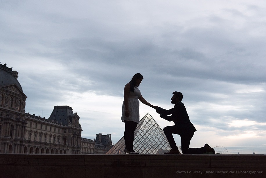 We visited The Louvre and just as we stepped in front of one of the world’s most renowned Parisian icons, he took out a solitaire ring from Tiffany & Co. and popped the question.