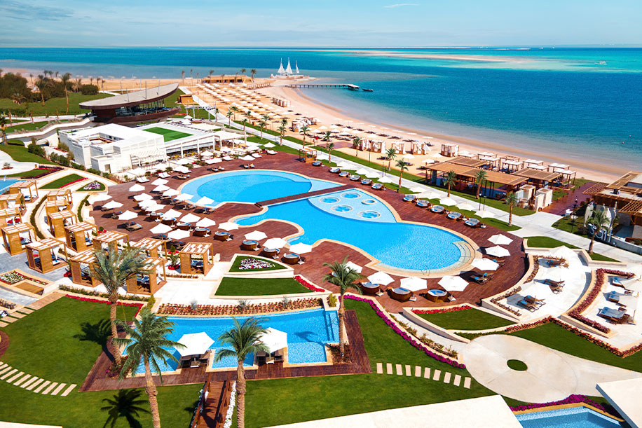Situated in the coastal city of Hurghada, one of Egypt’s most renowned tourist destinations with stunning crystal-clear waters and different water sports activities, Rixos Premium Magawish Suites and Villas is a cosmopolitan resort with exceptional facilities, sprawling gardens, a 1 km stretch of white sandy beach, ten bars, five a la carte restaurants, and the stunning Anjana Spa. With its contemporary design and luxurious villas with direct access to the pool along with a statement ballroom with a capacity of 800 pax, it promises ultra-luxurious celebrations.