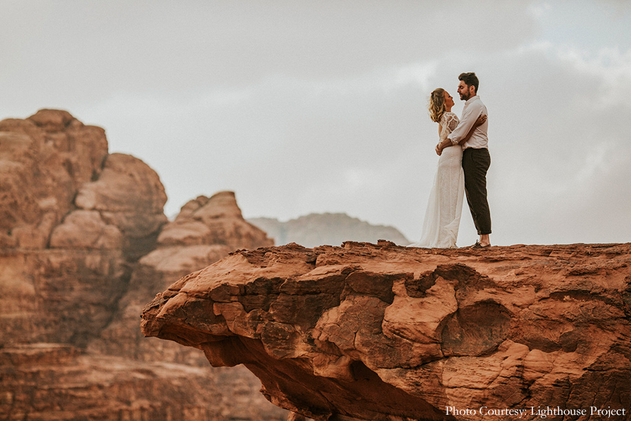 There isn’t a bride or groom in the throes of wedding prep who hasn’t fantasized about just grabbing their lover’s hand and running away from it all to get married in secret. There’s a thrilling aspect to the idea of eloping with your one true love – whether it is to escape obstacles to your union or just to focus unwaveringly on one another, not distracted by the bells and whistles of a traditional wedding. If you’ve thought about it then you may want to get inspired by this couple – who had their wedding and their elopement too amidst the stunning vistas of Jordan!