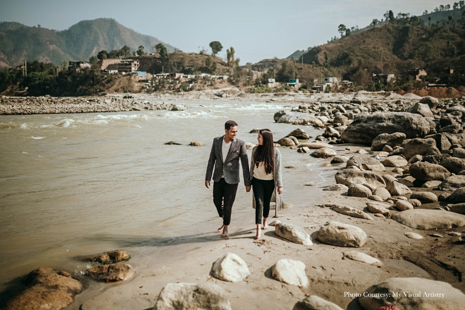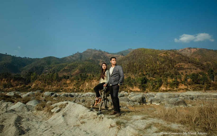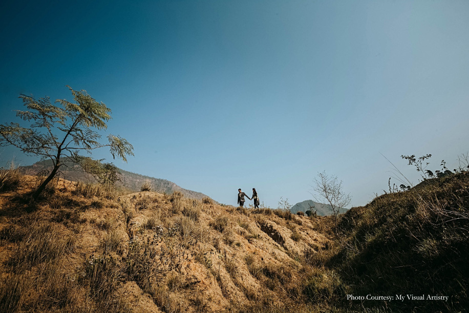 With its silent, serene landscapes edged with the high snow-capped mountains, Nepal is a compelling destination that offers mystery and majesty in all corners. Enchanted by its rugged yet cozy vibe, Saniya and Rohit chose to do their pre-wedding photo shoot in the land of the mighty Mount Everest. WeddingSutra Favourite – My Visual Artistry captured their poses and chemistry in splendid frames against stunning backdrops. Here, Saniya shares details of her love story and pre-wedding photo shoot experience.