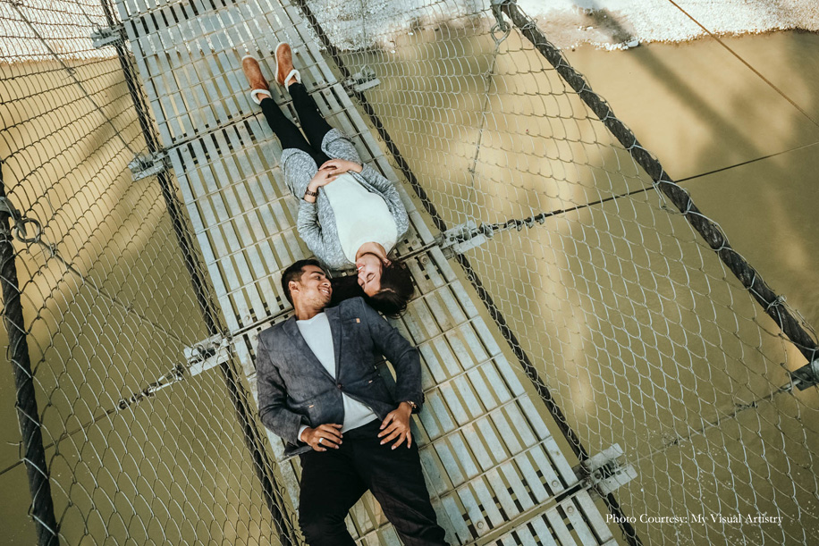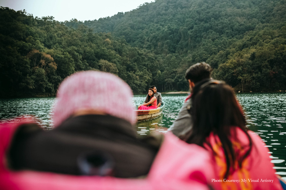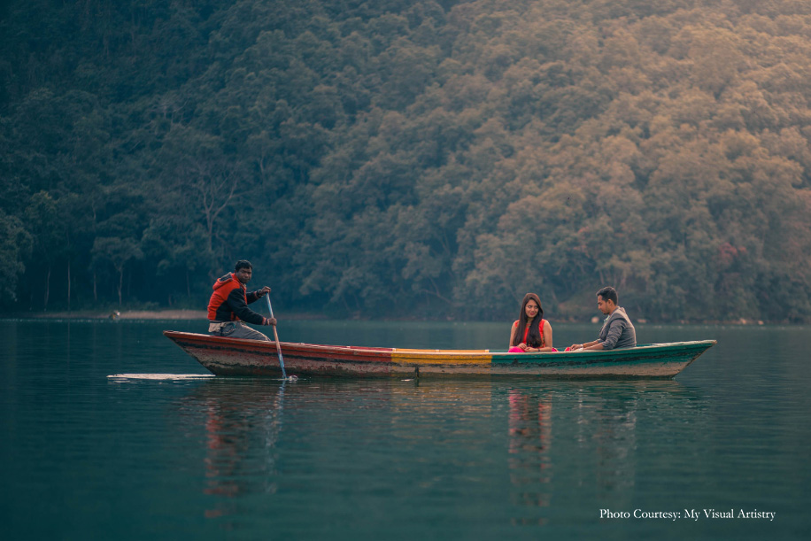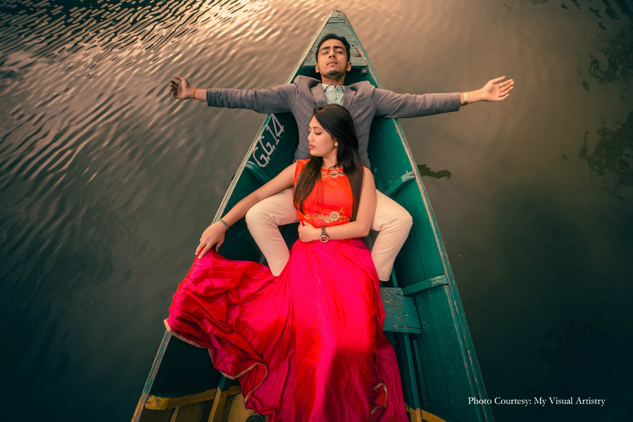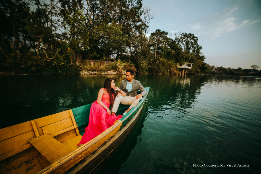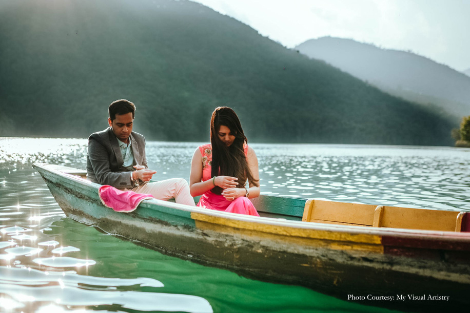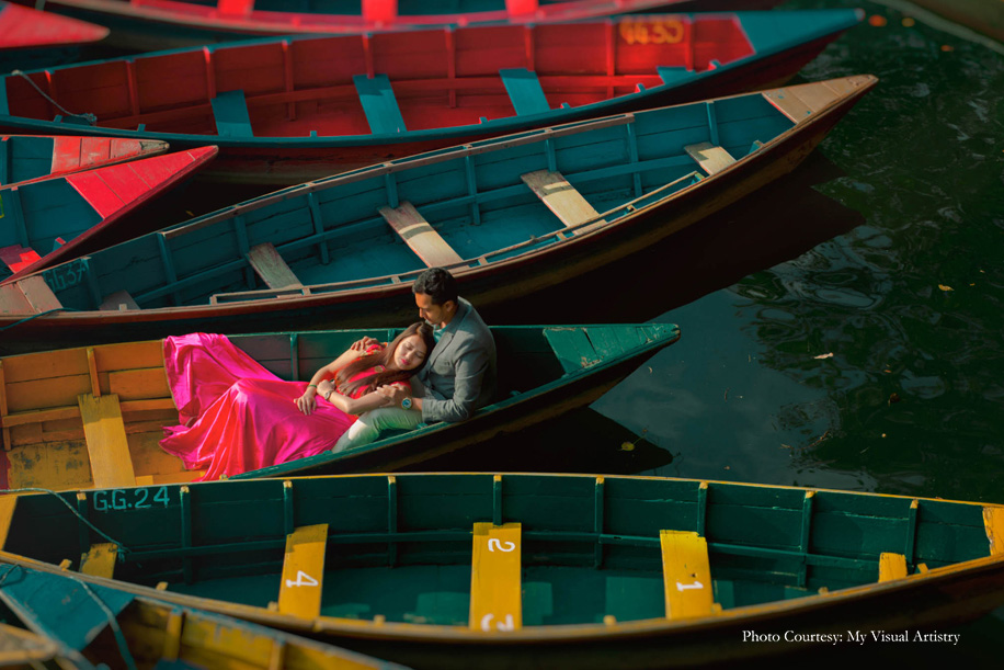 Saniya and Rohit steered clear of the more popular destinations for their pre-wedding photo shoot and decided to pay a visit to one of India’s neighbors instead. “Nepal is full of sights and scenes that will leave you overwhelmed. We closed down on Phewa lake, a few charming hill villages, and golden pagodas for our pre-wedding photo shoot. These places offered amazing backdrops for our photos. The views of the Himalayas added to the beauty of every setting and made the photographs a little more special,” shares George Gupta of The Visual Artistry.