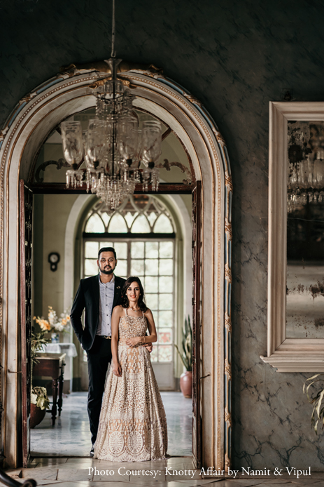 “We come from such different spheres of life we couldn’t imagine a life together. I met Devavrat at a party through my best friend in Pune. As we met over coffee and dinners, our fondness for each other grew. It all started with some flirtatious banter and then went on to grow into something so beautiful.”