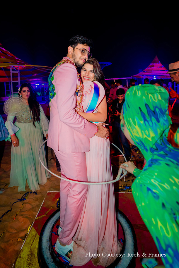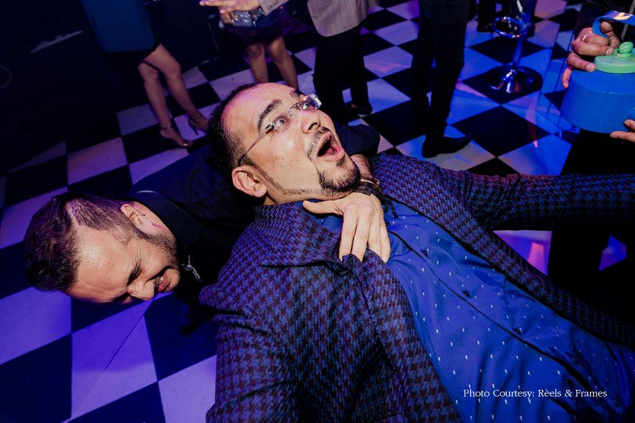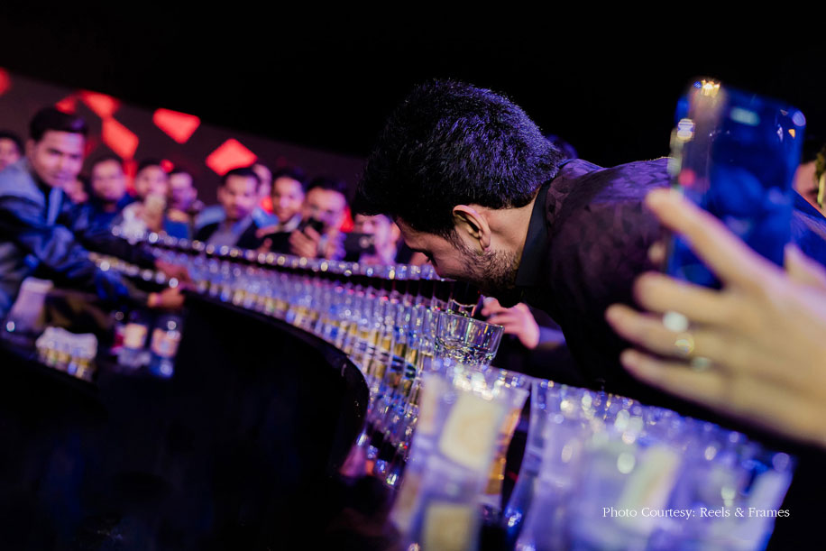 Live performances by reputed artists had everyone grooving until the couple made a grand entry. Classic turned to Insanity as DJ Amann Nagpal took to the stage with his team. While the entire event was an unusual one, the biggest highlight was the champagne bottle our groom popped. Now a 24-hour cocktail does call for something different right? Ruchit popped a 9-litre champagne bottle and after showering everyone with the bubbly, let’s just say they made history, including some historical hangovers!