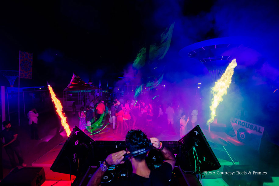 Fresh from its re-launch, Amby Valley opened its gates and this party swung right in. With WeddingSutra Favorites Kkings Events and Swaaha WMC on their team, the ‘Dementia Land’ themed bash truly sets some major goals. From toothy grins and carefree laughs to blurry moments, WeddingSutra Favorite Reels & Frames caught it all. Together, the three spirited teams made sure the event was smooth sailing! Here are some mind-boggling details shared with us.