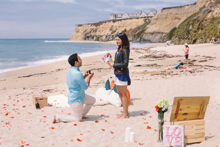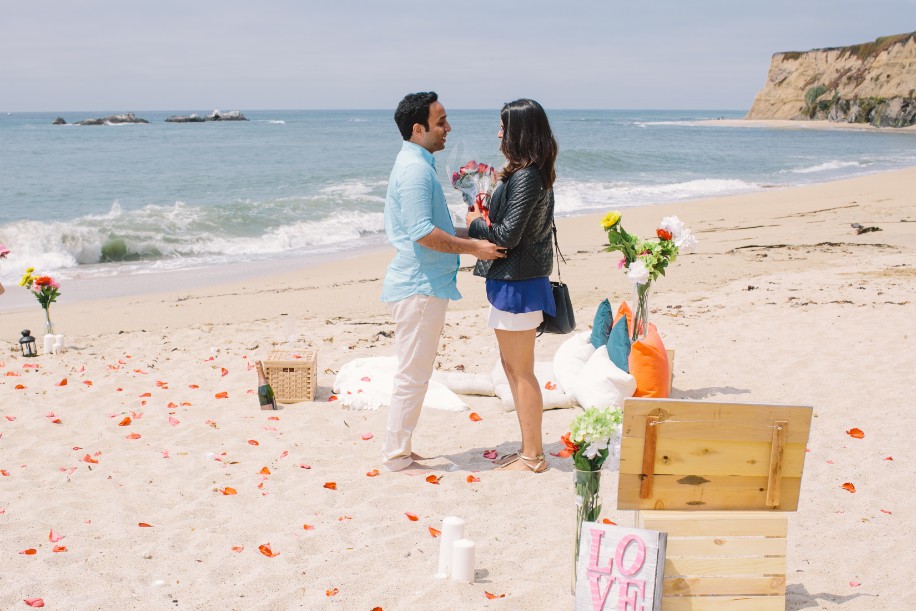 While talking about the romantic beach proposal, Rutika recalls, “One weekend, Neeraj planned this surprise for me where he went away saying that he was spending the day at a friend’s place working on a hackathon. That weekend, my friends asked me if we could spend Saturday by this beach in Half Moon Bay. I quickly agreed, not knowing that I had one of the biggest surprises awaiting me at that beach which would change my life. I reached there to this beautiful setup on the beach, where Neeraj got down on one knee and asked me to marry him. It was a ‘Yes’ from my side!”