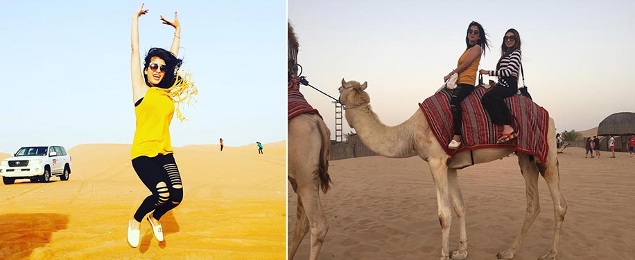 The pictures are proof! From the touristy desert safari to the adventurous scuba diving, Sagarika ensured her friends made memories forever, “Each day had its own story. We started with a camel ride in the desert safari and moved on to more adventurous expeditions such as scuba diving, underwater diving and also playing with dolphins!” There were also cycle rides along Marina Bay and a luxury yacht tour to appreciate the beauty of this city in the desert. Every evening, the girls treated themselves to some retail therapy at the sales in the Dubai Mall.