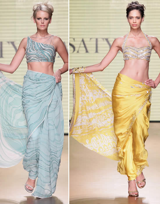 Satya Paul’s collection “Zen, Zest, Zip, Zap and Zing” , on the other hand, was, hmm, interesting with plenty of prints and embroidered textures.