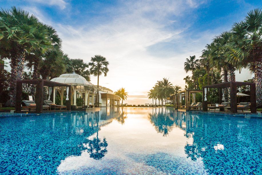 The InterContinental Hua Hin Resort lies just two and a half hours away from the bustling Thai capital of Bangkok. The resort is a serene and scenic haven where guests can relax and unwind from their travels the minute they step into it. The hotel is designed to showcase unrivaled style, sophistication, and comfort while combining Eastern and Western design influences. The low-rise beachfront destination spans a prime stretch of white sandy shore alongside the sparkling Gulf of Thailand waters making this property unparalleled when it comes to stunning views and picture-perfect events spaces.