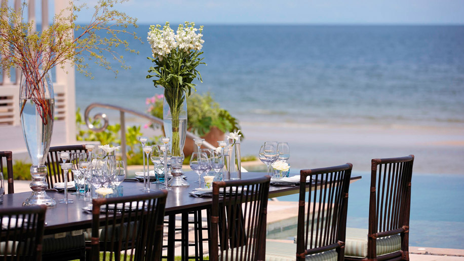 For couples who are looking for something that is truly unique, La Residence, the hotel’s most distinctive venue is sure to make an impression. Its elegant colonial-style architecture inspired by the 19th-century Summer Palace with two floors of classic Thai-Victorian luxury, a beautifully landscaped half-acre lawn, an infinity pool and direct beach access makes it perfect for a smaller, intimate wedding.