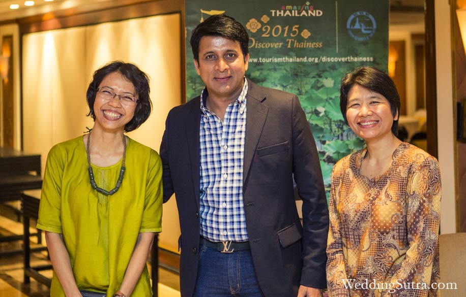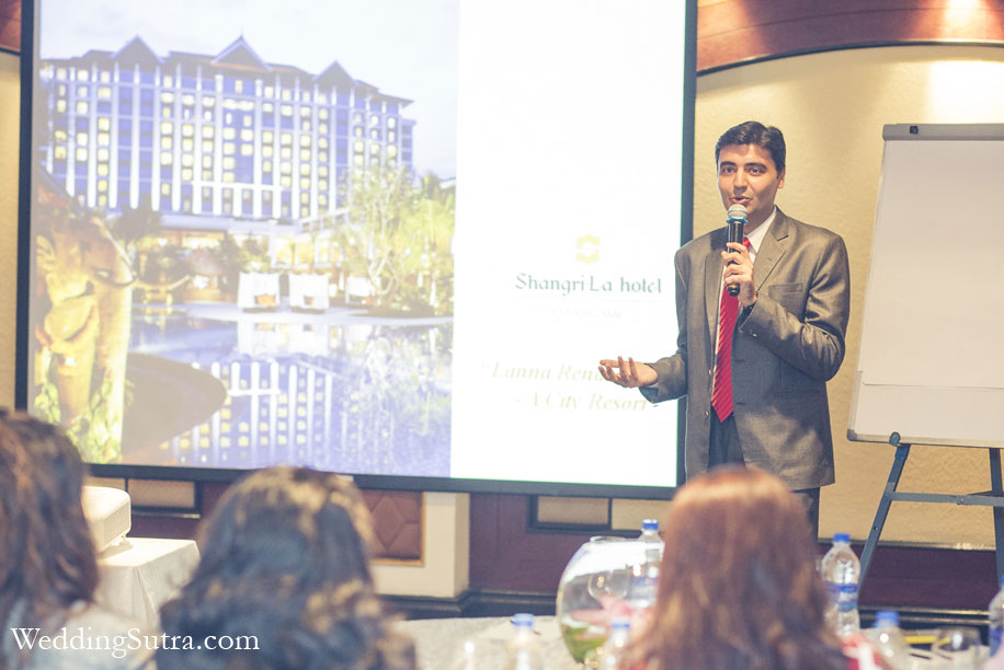 The session started with an engaging presentation by duo Neha and Darshan of Momente Weddings, who shared their experiences of planning/ managing weddings at the destination wedding hot-spots in Thailand. Khun Soraya Homchuen, Director of Tourism Authority of Thailand- Mumbai spoke about the incentive schemes for families/ planners planning an Indian wedding in Thailand. Disha and Harsh Munshaw of Customizing Creativity shared their visual communication created for destination and beach weddings while Ankita and Akash of WeddingNama shared their wedding films shot in Bangkok and Krabi. Gaurav Arora Director- Business Development of Shangri-La Hotels & Resorts spoke about their magnificent properties in Bangkok and Chiang Mai which are among the most preferred destinations for Indian weddings. Ace wedding photographer Dev Purbiya shared his Canvera Photobooks featuring amazing weddings in Thailand.