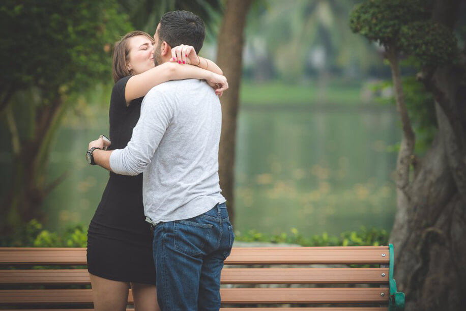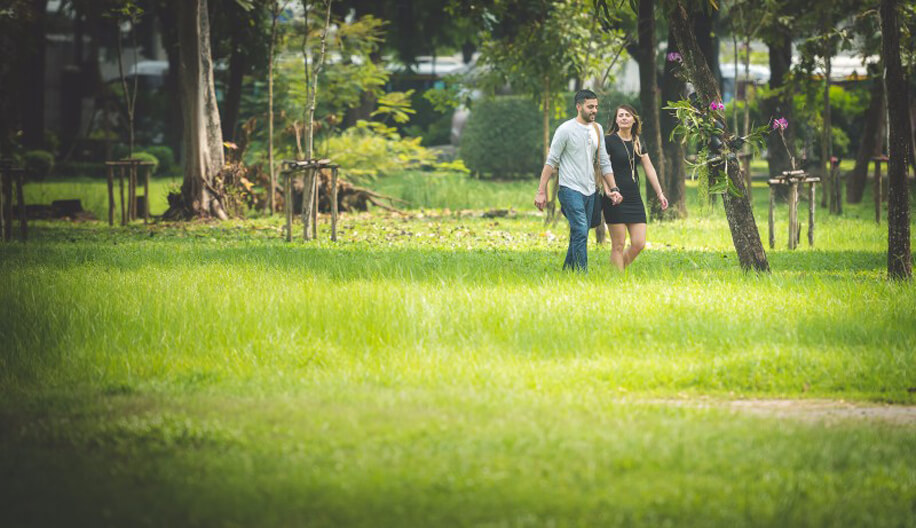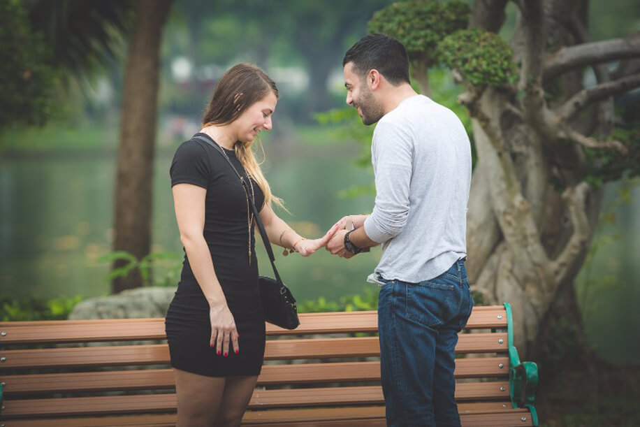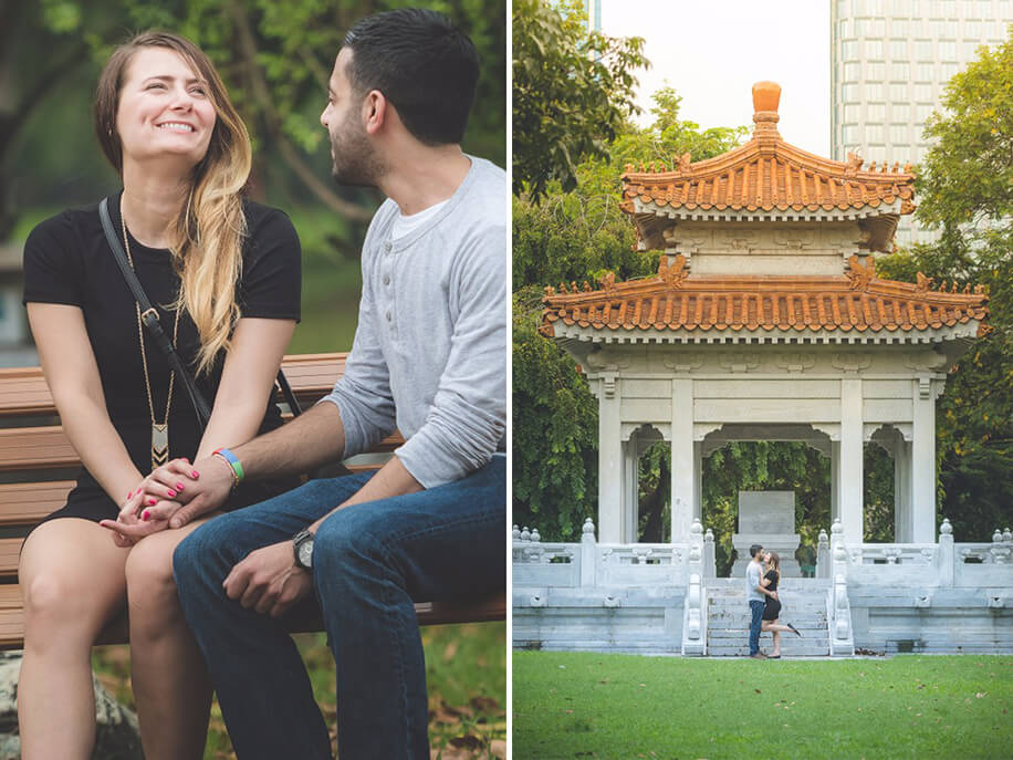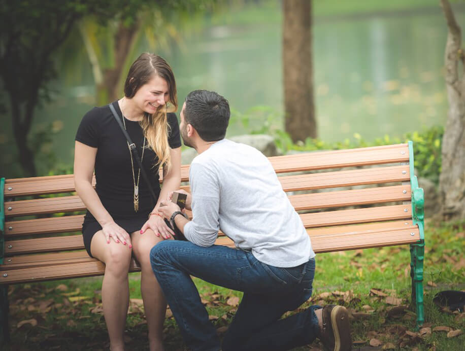 I wanted the photographer to be able to get candid, real emotions from us that would let him form a narrative but also to not let Melissa know or suspect anything. So even though I knew Anoop was following us, I kept Melissa distracted by chatting with her. There’s a beautiful bench in the middle of the park where I decided to propose to her. But, since it was evening, there were a lot of locals already crowding near the bench. Once they cleared, I asked Melissa to sit on the bench, took out a ring from my pocket, and asked her to marry me. She was left stunned but readily agreed!