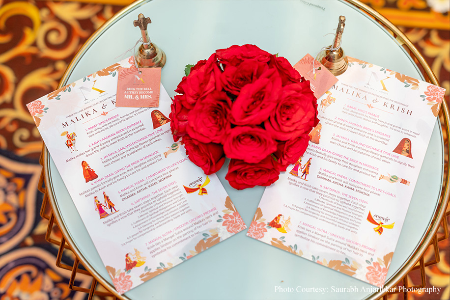 Giving us an overview of the brief shared by the couple and her experience while designing the wedding, Preeti Sheth from Knotie Production shares, “At the very beginning, it was made clear to us that the couple was keen on personalized elements that were unconventional. Malika being a creative entrepreneur herself, was very hands-on in the design process and wanted to detail each and every element of her wedding festivities. Right from the wedding decor to food curation to her outfits, everything was well planned and curated as per her input.