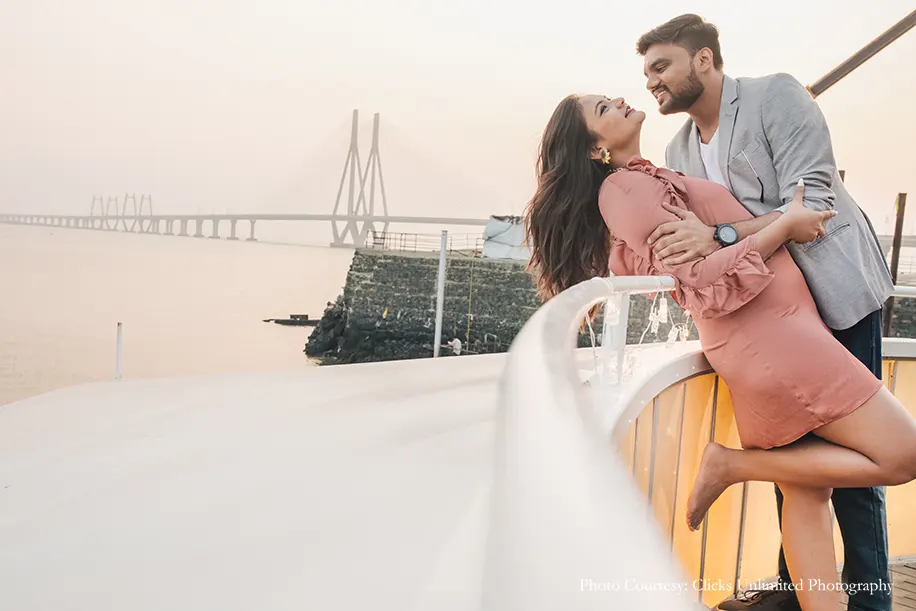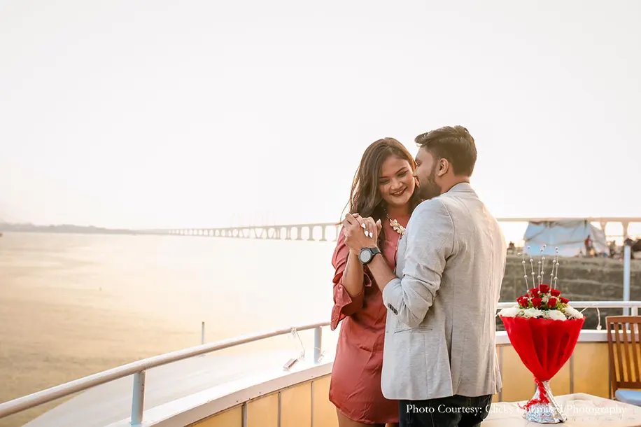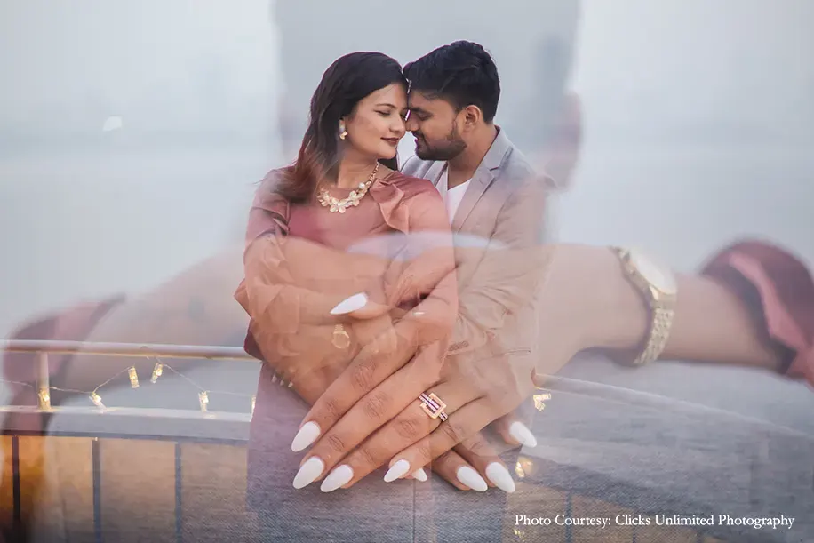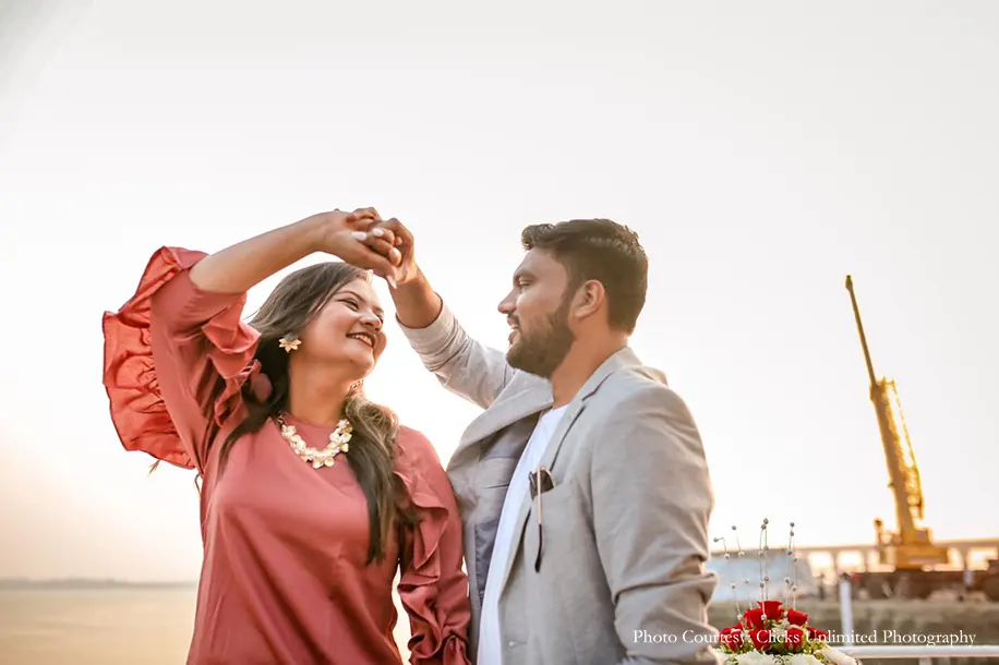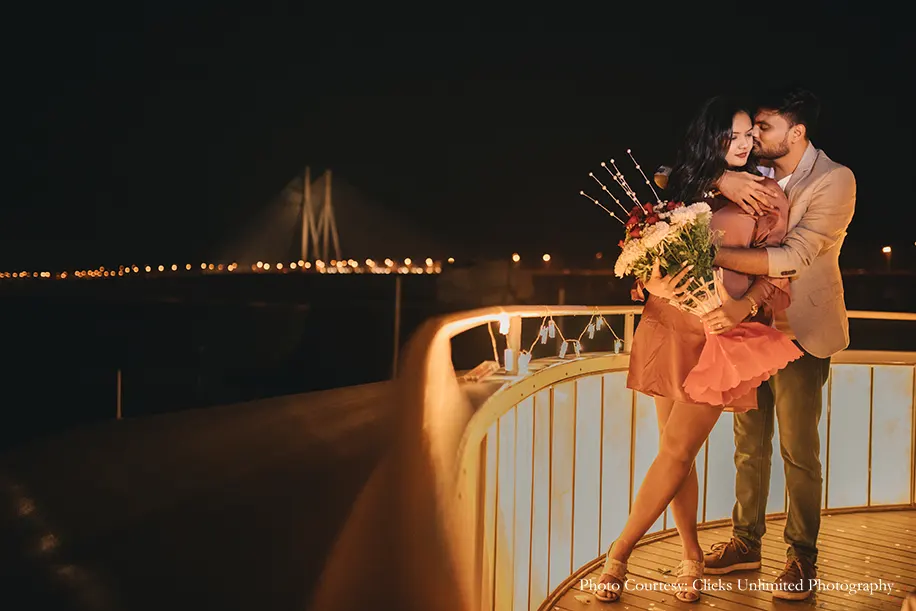 A classic case of friendship turning into love, Khushali Jobalia and Khanjan Shah’s love story kickstarted with the duo forming a close bond of friendship. Having known each other for the past ten years, they’d always dreamed about popping the question to each other in a stunning proposal. Rising up to the challenge, Khanjan spurred by his love orchestrated a luxurious yet adorable seaside proposal that swept Khushali off her feet! Captured by WeddingSutra Favorite – Clicks Unlimited Photography who clicked every affectionate moment in stunning frames, this proposal was fit for the storybooks.
