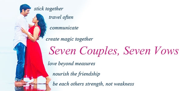 Just Married? Would you like to be one of the couples to be featured on ‘Seven Couples Seven Vows’. Email us at weddingsutra@gmail.com with the subject line ‘Seven Couples Seven Vows’, your names, when (date) and where (city) you got married, how you met and two photos (a pre-wedding or engagement photo, and your wedding photo).