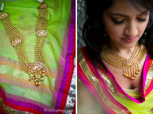 Rani haar with pink and green enamel work. Photo courtesy- Shades Photography.