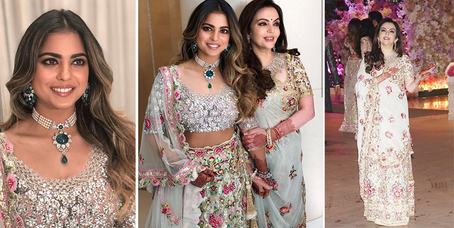 3. Isha Ambani and Nita Ambani too, picked for themselves outfits from Abu Jani Sandeep Khosla. With the daughter went with an ensemble that was created using a pastel pink fabric, the mother chose the color grey.