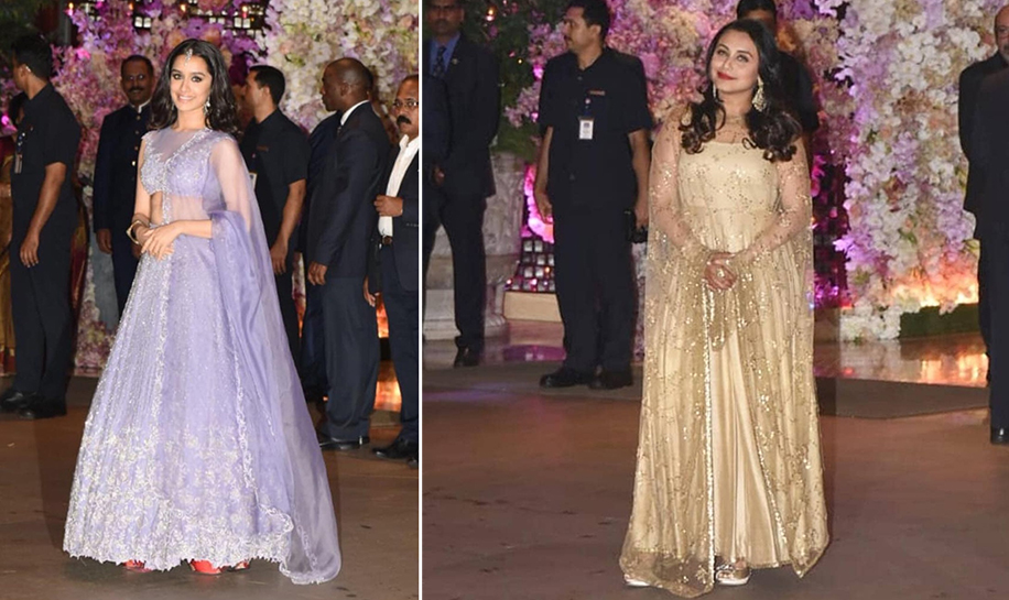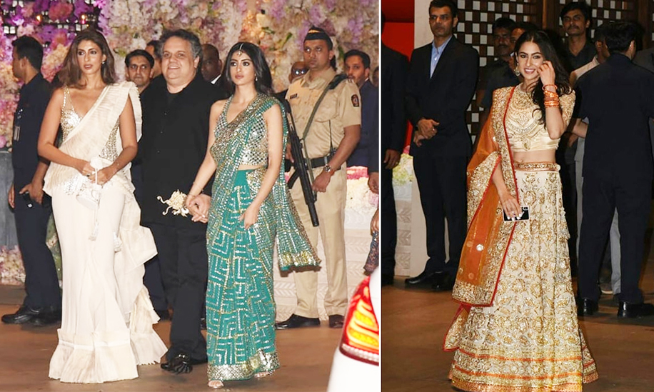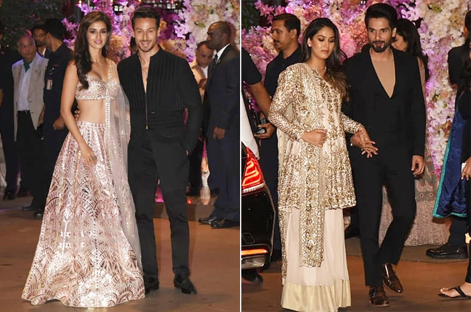 12. Disha Patni attended the ceremony in a champagne lehenga by designer duo Falguni Shane Peacock that did everything to flatter her physique. Mira Rajput dressed up in a pastel pink creation by Manish Malhotra complete with heavy golden and silver work.