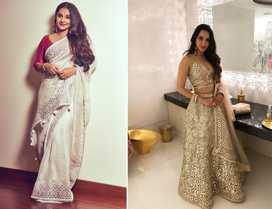 6. Vidya Balan stuck to her most preferred Indian attires of all times, a saree and once again left everyone impressed by selecting a creation by Anita Dongre. Abu Jani Sandeep Khosla dressed Kiara Advani in a dual tone golden and silver lehenga. The beautiful blouse that was paired with the skirt played the key role in elevating her look.