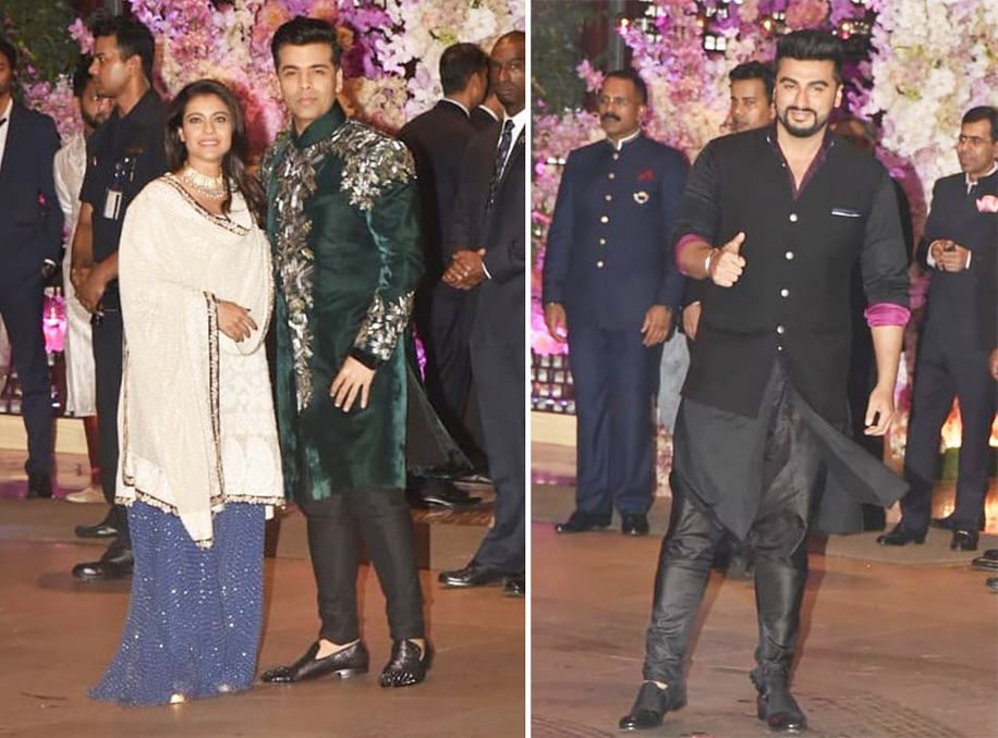 11. Karan Johar chose an embellished jade green achkan with black chudidar by Manish Malhotra while Kajol wore a sparkling blue sharara by Anjul Bhandari that was teamed with a white kurta and dupatta. Arjun Kapoor was the man in black in a monotone kurta chudidar and bandi by Kunal Rawal.